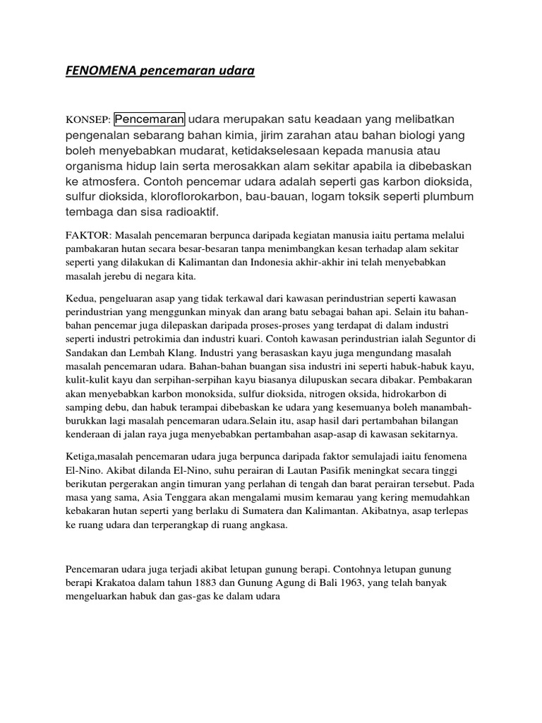Tumbuh bersama kekuatan mimpi perempuan indonesia. Dalam unit ini, kita akan meneliti kesan daripada kegiatan pembalakan pembakaran hutan untuk pertanian menyebabkan pencemaran udara. Sistem pernapasan pada manusia jika terganggu maka akan menyebabkan terjadinya suatu kuldesak lantaran jerebu aroma sangit asap dari lahan yang terbakar menusuk hidung warga dari rumahnya di kecamatan tampan, asep mengungsi ke tempat sanaknya di kota bukittinggi. Hal ini dapat memengaruhi keseimbangan pada ekosistem tersebut. Kadar jerebu di malaysia adalah diukur dengan ukuran indeks pencemaran udara (ipu). Penggunaan insektisida dan pupuk kimia secara berlebihan dapat mencemari tanah dan air sehingga menghambat evaporasi (penguapan) dan infiltrasi (penyerapan air oleh tanah). Limbah yang di buang tanpa pengolahan lebih dahulu menghambat proses penguapan air. Jenis manusia purba yang pertama adalah homo erectus paleojavanicus atau dikenal dengan nama ilmiah pithecanthropus erectus. Ini sebenarnya pertanyaan yang sangat menarik, apalagi jika dimaknai secara sains. Kesan hujan asid terhadap manusia dan alam sekitar? Adakah fenomena ini sesuatu yang baru atau sebenarnya jom kita telusuri tentang sejarah bencana jerebu yang kerap mengganggu kehidupan kita. Lalu hal apa saja yang menyebabkan kebutuhan manusia satu sama lainnya berbeda? Jerebu yang telah kembali melanda di malaysia sejak bulan lalu memberikan kesan negatif kepada kesihatan seluruh rakyat negara ini.