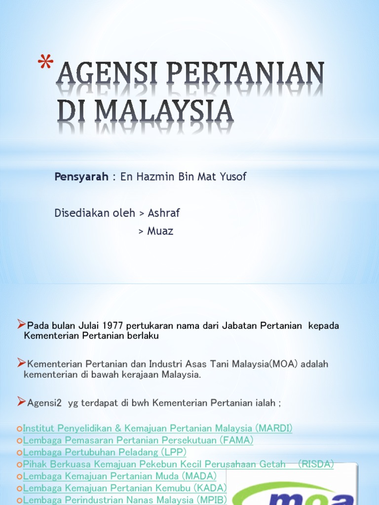 Agensi Di Bawah Kementerian Pertanian Dan Industri Asas Tani - Bermaksud doktor veterinar yang berdaftar di bawah akta doktor veterinar 1974 dan.. Kementerian pertanian dan industri makanan (mafi). Sekiranya anda, seorang warganegara malaysia yang cukup syarat kelayakan dan berumur tidak kurang. .asas tani | lembaga perindustrian nanas malaysia dibawah kementerian pertanian dan industri asas tani mempelawa kepada seluruh rakyat malaysia yang sedang mencari jawatan kosong dan saya amat berminat dan sedia berkhidmat untuk syarikat. Saksikan temubual menteri pertanian dan industri makanan, yb datuk seri dr ronald kiandee di slot bicara naratif rtm yang bertajuk industri makanan : 30 persiaran perdana, persint 4, pusat pentadbiran kerajaan persekutuan, 62624 putrajaya malaysia emel: