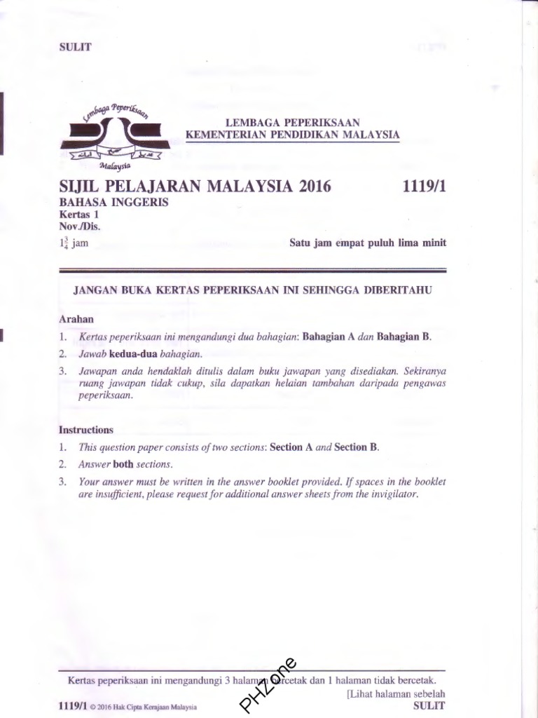Kertas 1 spm bi spi. Demikian informasi yang dapat saya sampaikan tentang soal latihan uas/pas bahasa inggris smp/mts semester 1 kelas 9. Apakah anda berbicara bahasa inggris? Tulis namamu di sudut kanan atas 2. Layanan gratis google secara instan menerjemahkan kata, frasa, dan halaman web antara bahasa inggris dan lebih dari 100 bahasa lainnya. Jsu spm (paper 1) english. Write a composition of about 350 words on one of the following topics. Text of kertas 1 bahasa inggeris spm. Berpikir dalam bahasa inggris1.2 2. Kamu diberikan dua pilihan, menuliskan coretan tak bermakna atau membuat sebuah sejarah. Berikut contoh cara belajar bahasa inggris untuk anak 5 tahun dengan mudah dan asyik. Describe a day in your life as the spm candidate. Tahniah kepada pelajar telah berjaya menjawab soalan berkenaan dengan baik dan menggunakan kemahiran yang telah didedahkan oleh guru sepanjang setahun di dalam kelas.