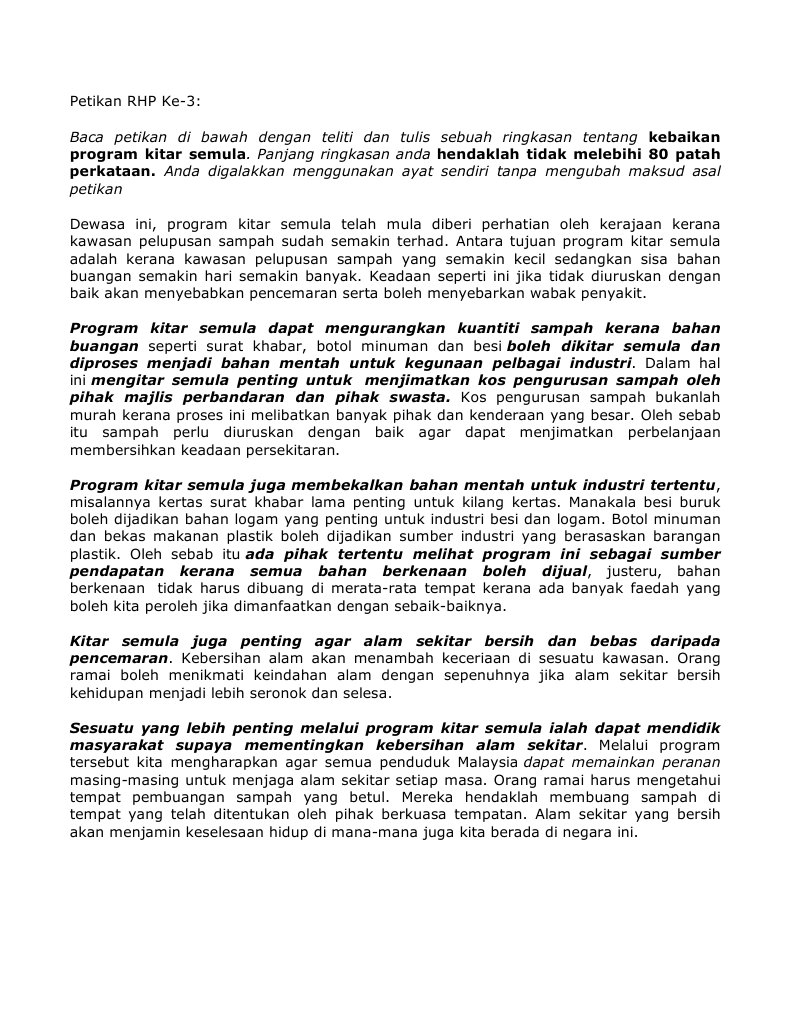 Dalam era pembangunan moden zaman kini, pelbagai topik menjadi halwa telinga kita saban hari. Learn vocabulary, terms and more with flashcards, games and other study tools. Kebersihan alam akan menambah keceriaan di sesuatu kawasan. Kitar semula adalah proses menukar bahan buangan menjadi bahan dan objek baru. Antaranya seperti tin aluminium, produk berasaskan plastik, botol kaca dan kertas.