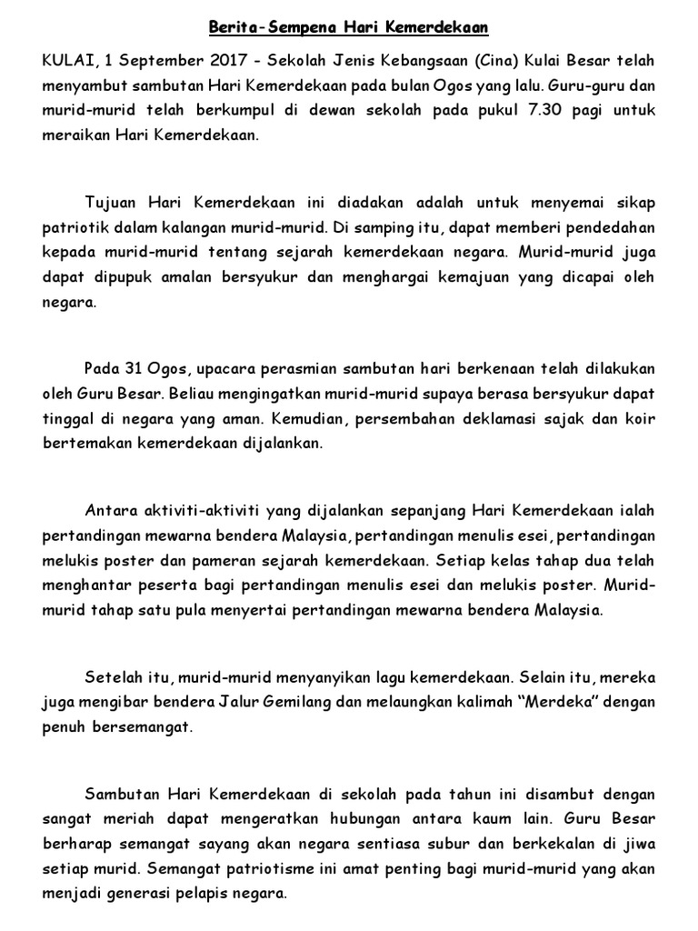 Tb sambutan hari kemerdekaan pada 2019. Sambutan hari kemerdekaan ke 62. Documents similar to 36978398 teks pengacara majlis sambutan hari kemerdekaan. Record and instantly share video messages from your browser. Selamat pagi, dan salam sejahtera untuk kita semua.