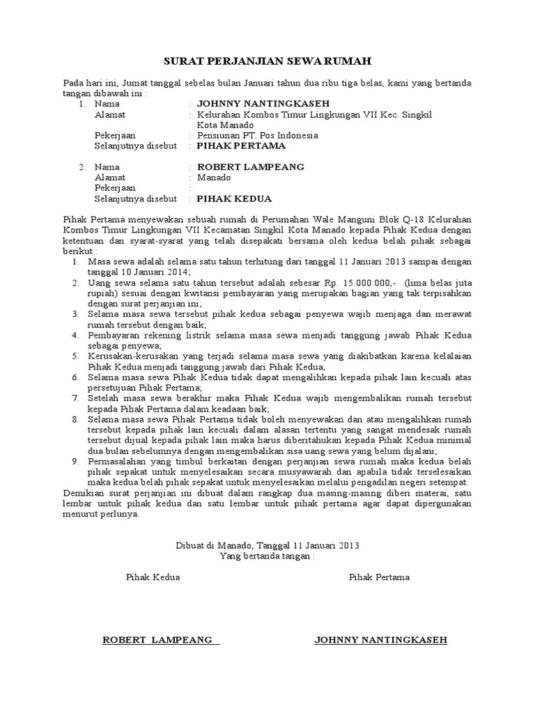 Menyertakan surat perjanjian sewa rumah mungkin cukup awam dilakukan masyarakat. Contoh surat perjanjian sewa menyewa rumah 1 tahun, 3 tahun, 10 tahun. Contoh surat perjanjian kontrak rumah. Terimakasih telah berkunjung di gawe cv pada post contoh surat perjanjian rumah sewa. Proses kontrak rumah harus melalui prosedur tertentu.