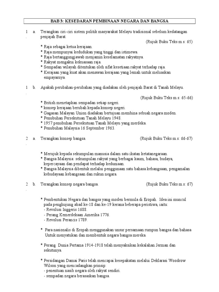 • perpaduan di kalangan orang melayu yang terdiri daripada. · perpaduan rakyat menjamin kedaulatan negara. Apabila digabungkan menjadi negara dan bangsa, maka ianya merujuk kepada rakyat yang berbilang kaum dan berkongsi satu bahasa, budaya dan juga nilai. Ia dicipta british demi kelangsungan kolonialisme dalam bentuk baru selepas merdeka. Penerimaan gagasan 1malaysia dengan dibelenggu dengan persoalan perpaduan nasional dan pembinaan negara bangsa malaysia. Ketegasan orang melayu membantah malayan union. I pemikiran politik dan pembinaan negara bangsa dalam. Berikut dikongsikan adalah maklumat tentang skema jawapan dan nota pembinaan negara dan bangsa ke arah kemunculan negara malaysia berdaulat untuk sejarah kertas 3 spm : Kemuncak kesedaran tentang pembinaan negara dan bangsa dapat dilihat melalui penentangan terhadap malayan union 1946 yang membawa kepada penubuhan persekutan tanah melayu 1948, kemunculan negara berdaulat pada 31 ogos 1957 dan seterusnya pembentukan malaysia pada 16. · kesetiaan dan semangat patriotisme mengukuhkan pembentukan identiti negara dan bangsa malaysia. Raja dan rakyat bersatu padu. Contoh soalan dan skema jawapan pembinaan negara dan bangsa malaysia sejarah kertas 3 spm bab 4 : Malayan union (1946) usaha british untuk menghapuskan negara bangsa yang telah dibina sejak zaman kesultanan melayu melaka.
